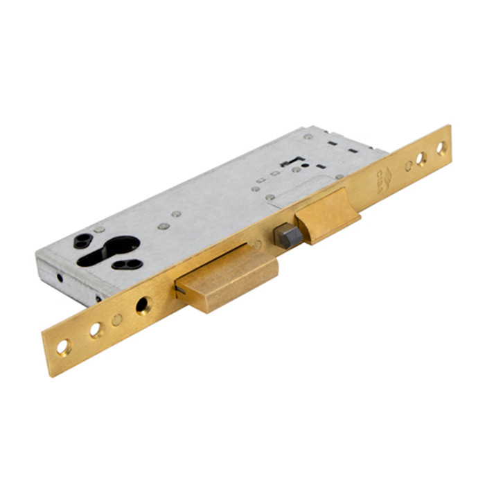 Замок выполнен из оцинкованной стали, что обеспечивает его долговечность и устойчивость к внешним воздействиям. Торцевая планка и ответная планка из матированной латуни придают замку эстетичный вид и повышают его износостойкость. Язычок замка управляется электрическим импульсом и механической сердцевиной, что позволяет легко интегрировать его в системы контроля доступа.