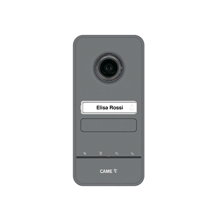 Встроенная камера панели вызова системы PAL с разрешением 728 x 560 и микропроцессором для цифровой обработки сигнала. Широкоугольная оптика имеет угол обзора 98° по горизонтали и 72° по вертикали. Два выхода для управления электрическим замком и другими устройствами. Кнопки с именной табличкой и белой подсветкой. Программирование возможно вручную, через мобильное приложение SetUp (через устройство CAME Key) или программное обеспечение. Класс защиты от воды и пыли IP54.