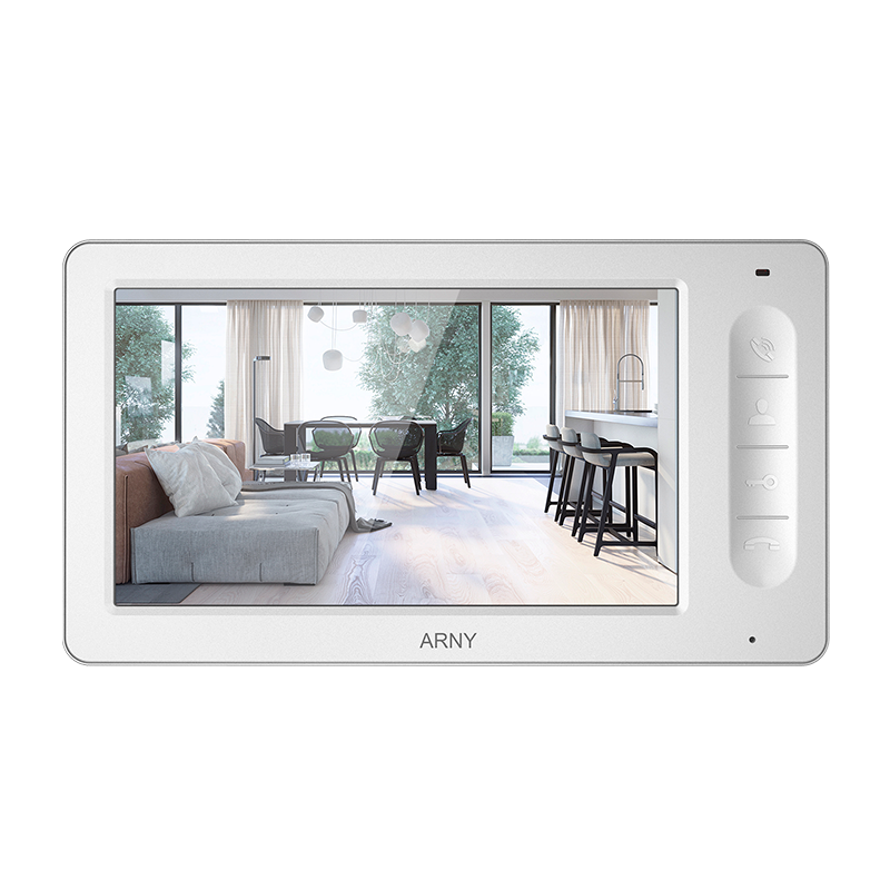 Центральное устройство комплекта - видеодомофон ARNY AVD-706 - выполнен в компактном корпусе и доступен в двух цветах: чёрном и белом. Это позволяет легко интегрировать его в любой интерьер. Основные особенности монитора: